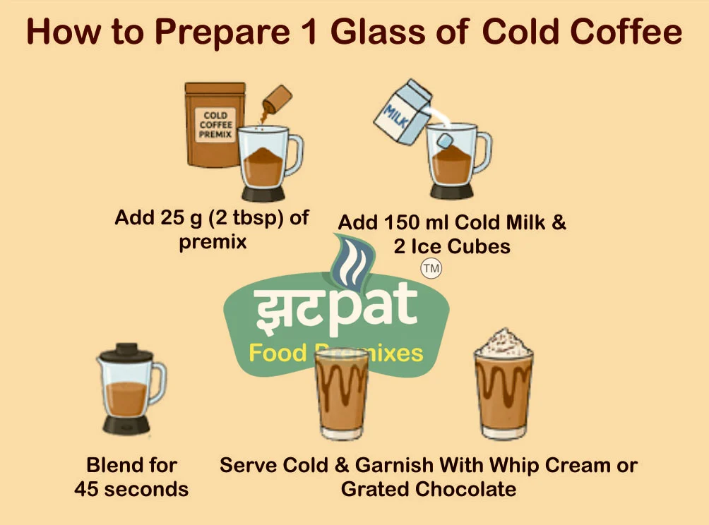 Indulge in the smooth, café-style luxury of perfectly blended cold coffee—right at home or in your café! Zatpat Food Premixes Cold Coffee Premix is crafted using premium instant coffee, rich cocoa, and natural flavors to give you the ultimate refreshing experience in just minutes.