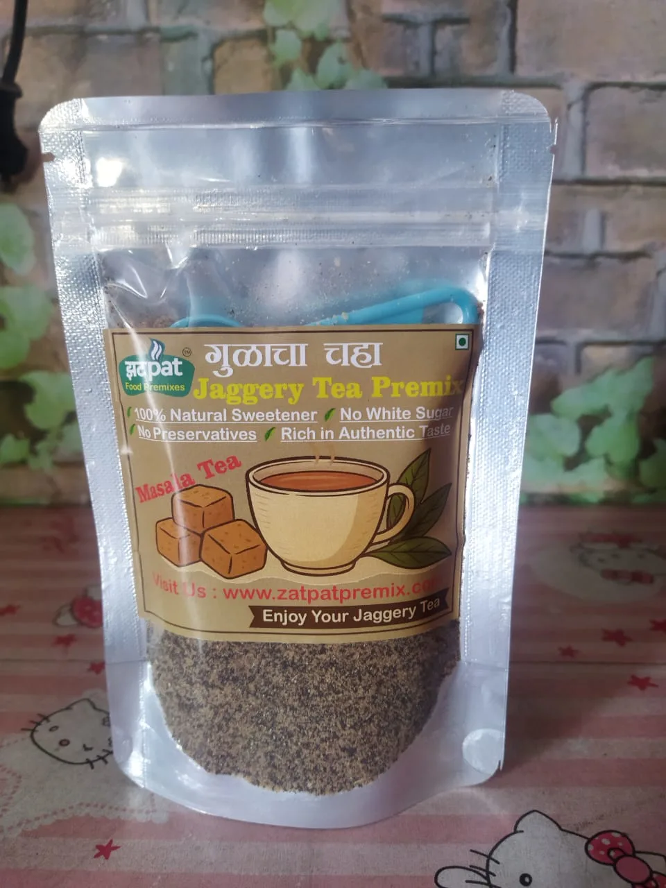 Experience the bold and comforting taste of authentic Indian masala chai with Zatpat Masala Jaggery Tea Premix. It is made using natural jaggery and fresh spices like cardamom, cinnamon, clove, and ginger. You get a tasty, comforting cup of chai without any preservatives.
