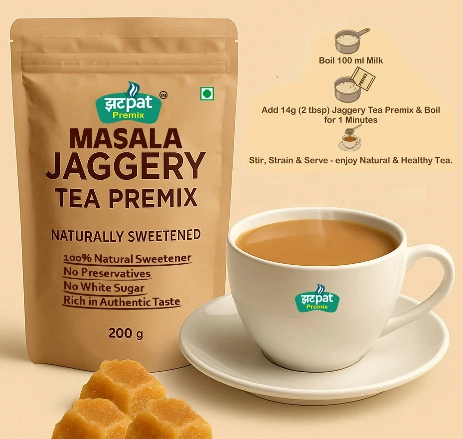 Reignite your love for chai with Zatpat Food Premixes – Masala Jaggery Tea Premix. This mix brings you a smooth blend of Indian spices, real tea powder, tea masala, and natural jaggery. Every sip feels warm and bold. It has no preservatives or artificial sweeteners, so it is a healthier choice.